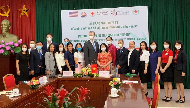 Vừa qua, tại Hà Nội, thay mặt Hội Chữ thập đỏ Hoa Kỳ, Đại sứ Hoa Kỳ Daniel Kritenbrink đã tiếp nhận 420.000 khẩu trang y tế, trong đó có 120.000 khẩu trang của Hội Chữ thập đỏ Việt Nam và 300.000 khẩu trang của Hội Cựu du học sinh Việt-Mỹ tại Hà Nội (VUSAC Hanoi).