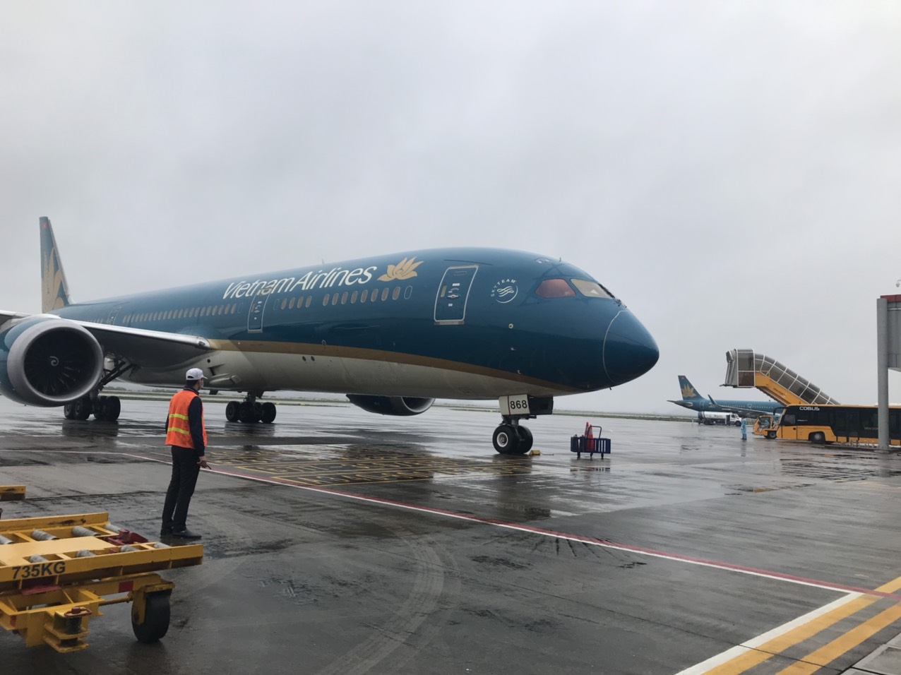 Chiều 19/3, hai chuyến bay từ Nhật Bản đã lần lượt hạ cánh xuống sân bay quốc tế Vân Đồn. Giống như công tác đón nhiều chuyến bay giải cứu từ các vùng dịch Trung Quốc, Hàn Quốc, Châu Âu và các nước Đông Nam Á, sân bay Vân Đồn tuân thủ chặt chẽ các quy định phòng dịch.