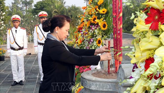Sáng 17/1, Chủ tịch Quốc hội Nguyễn Thị Kim Ngân và Đoàn công tác Trung ương, lãnh đạo Tỉnh ủy, Hội đồng nhân dân, Ủy ban nhân dân, Mặt trận Tổ quốc Việt Nam tỉnh Bến Tre đã tới dâng hoa, dâng hương tại Nghĩa trang Liệt sĩ tỉnh Bến Tre.
