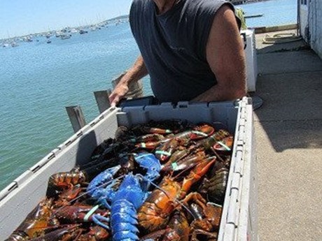 Một ngư dân đánh bắt tôm hùm ở Massachusetts, Mỹ, vô cùng may mắn khi phát hiện con tôm hùm màu xanh dương quý hiếm trong lưới.