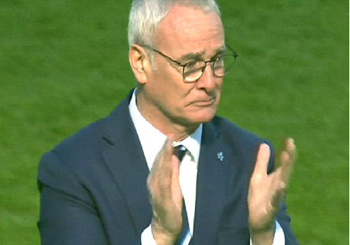 HLV Claudio Ranieri đã rơi nước mắt khi Leicester City giành chiến thắng 2-0 trước Sunderland trong trận đấu thuộc vòng 33 Premier League.