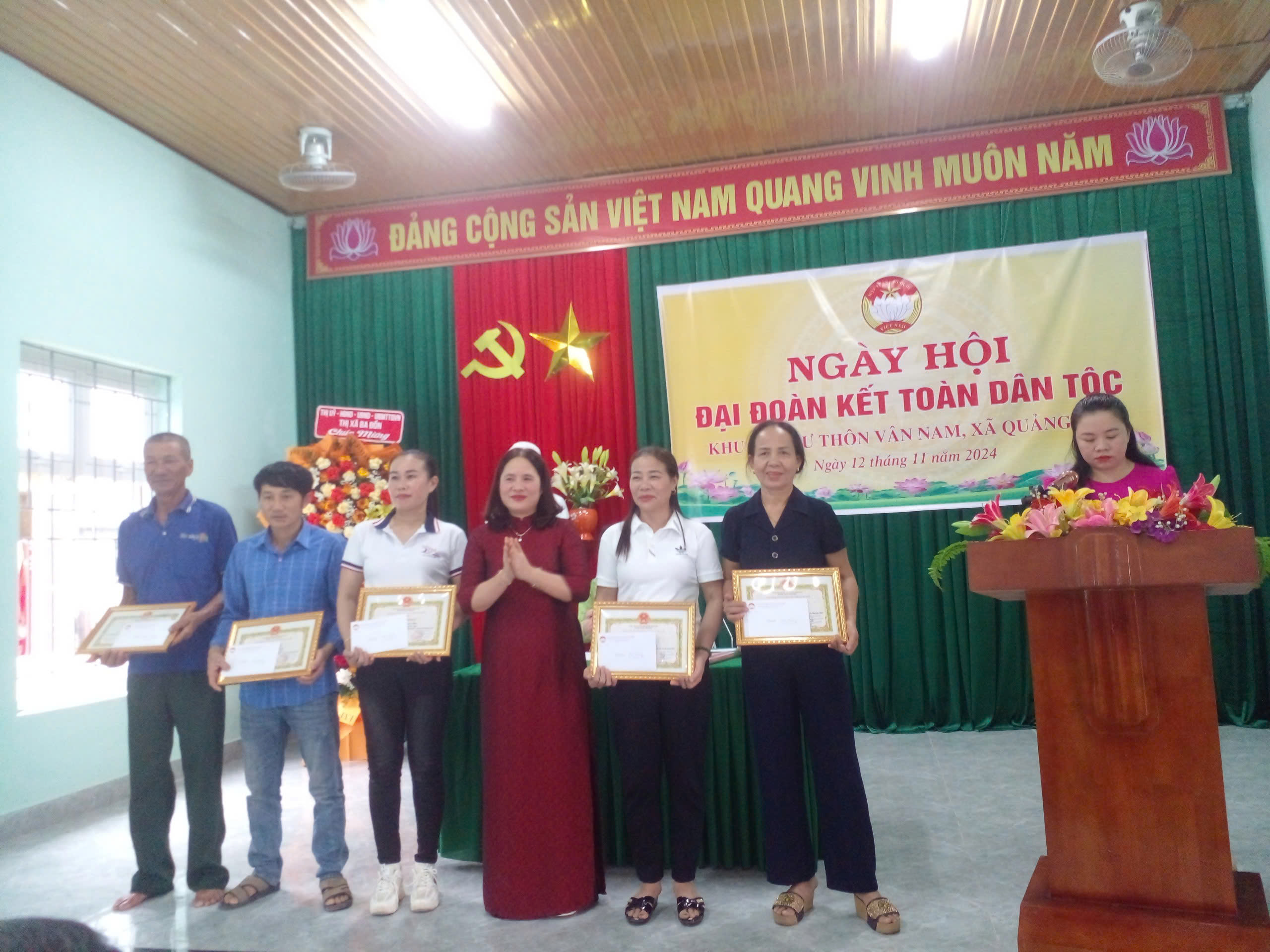 Chiều ngày 12/11, bà Phạm Thị Giang Hà - Ủy viên Ban Thường vụ thị ủy, Trưởng ban tổ chức thị ủy đã đến dự Ngày hội Đại đoàn kết toàn dân tộc năm 2024 tại thôn Vân Nam, xã Quảng Hải, thị xã Ba Đồn.