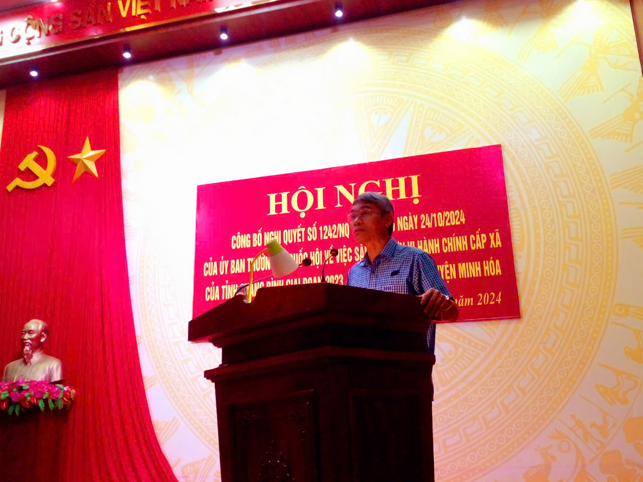 Sáng 22/11 diễn ra Hội nghị công bố Nghị quyết số 1242/NQ-UBTVQH15, được Ủy ban Thường vụ Quốc hội khóa XV thông qua ngày 24/10/2024, có hiệu lực thi hành từ ngày 1/12/2024; có những thay đổi quan trọng trong hành chính cấp xã của tỉnh Quảng Bình.