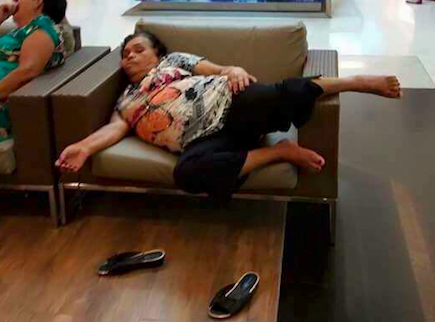 Gần đây trên mạng đang lan truyền hình ảnh một người phụ nữ đang nằm ngủ quên tại trung tâm thương mại. Và chắc sau khi xem những tác phẩm được cư dân mạng "chế" thế này thì sẽ không có ai dám ngủ quên tại nơi công cộng nữa.