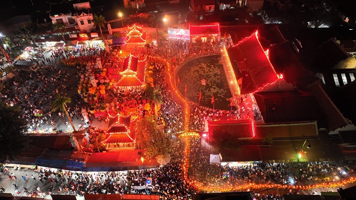 Tối ngày 13/4 tức ngày 5/3 ÂL, tại Khu Di tích Lịch sử - Văn hóa Phủ Dầy (thôn Tiên Hương, xã Kim Thái, huyện Vụ Bản, tỉnh Nam Định) đã diễn ra Lễ rước đuốc đăng long – một trong những nghi lễ quan trọng nằm trong chuỗi chương trình Lễ hội Phủ Dầy năm 2024. Phủ Chính được trang hoàng lộng lẫy đèn hoa và có rất đông người dân, du khách thập phương về lễ Mẫu đều tham dự nghi lễ rước đuốc truyền thống này.