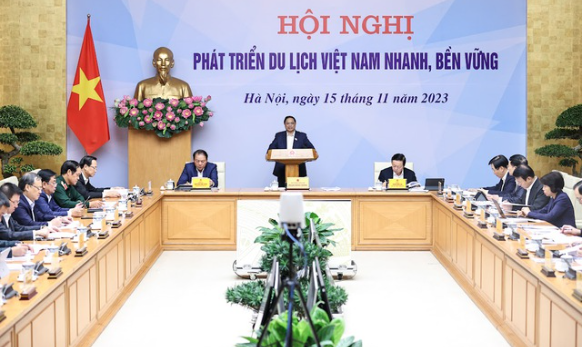Sáng 15/11, Thủ tướng Phạm Minh Chính chủ trì Hội nghị "Phát triển du lịch Việt Nam nhanh, bền vững''. Hội nghị được tổ chức trực tuyến giữa đầu cầu Trụ sở Chính phủ với Trụ sở UBND 63 tỉnh, thành phố trong cả nước.