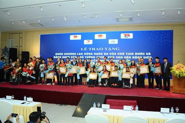 Sáng 29/11, tại Hà Nội, Nhân kỷ niệm Ngày Quốc tế về người khuyết tật 3/12, 33 cá nhân là HLV, VĐV người khuyết tật xuất sắc được nhận Huân chương Lao động hạng Ba của Chủ tịch nước và bằng khen của Thủ tướng Chính phủ.