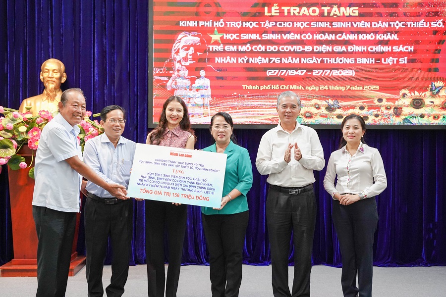 Chiều 24/7, Ủy ban MTTQVN TP Hồ Chí Minh tổ chức trao 112 suất kinh phí hỗ trợ hỗ trợ học tập cho học sinh, sinh viên dân tộc thiểu số; học sinh, sinh viên có hoàn cảnh khó khăn; trẻ mồ côi do dịch COVID-19 thuộc diện gia đình chính sách.