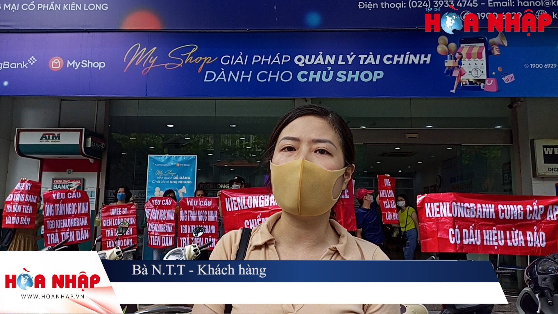 Hàng chục người biểu tình trước Chi nhánh Ngân hàng Kiên Long Bank (Kienglong Bank) taij Hà Nội để đòi tiền, nhiều người cho rằng có nguy cơm mất trắng tiền khi sử dụng App Umee by Kienlongbank (Ứng dụng của Kienlongbank).