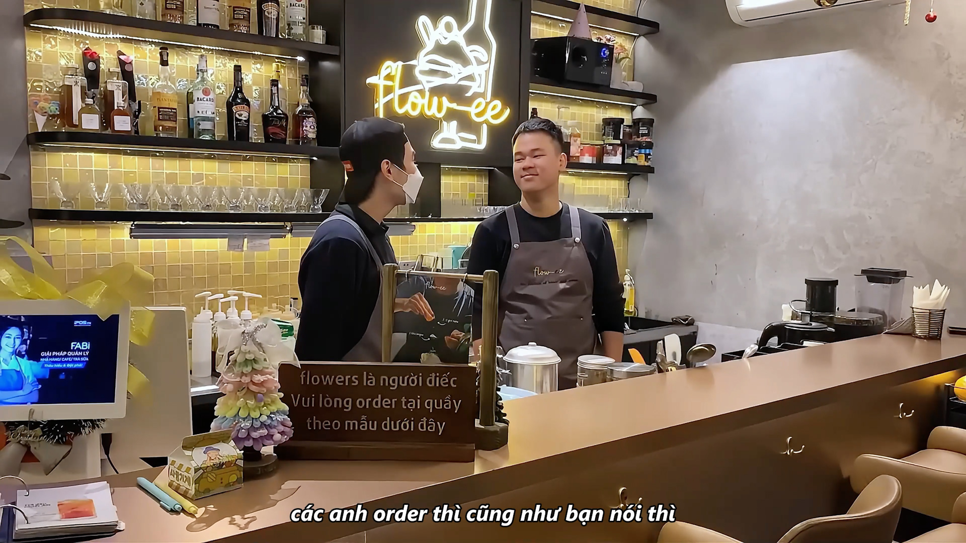 “Bông Hoa” là từ mà mọi người ở quán dùng để gọi nhân viên, đưa tay chụm lên miệng rồi mở bung ra là cách “nói” lời cảm ơn, hay gọi món bằng kí hiệu tay chính là những điểm đặc biệt khiến quán cà phê Flow-ee như một ngôi nhà chung của các bạn trẻ khiếm thính.