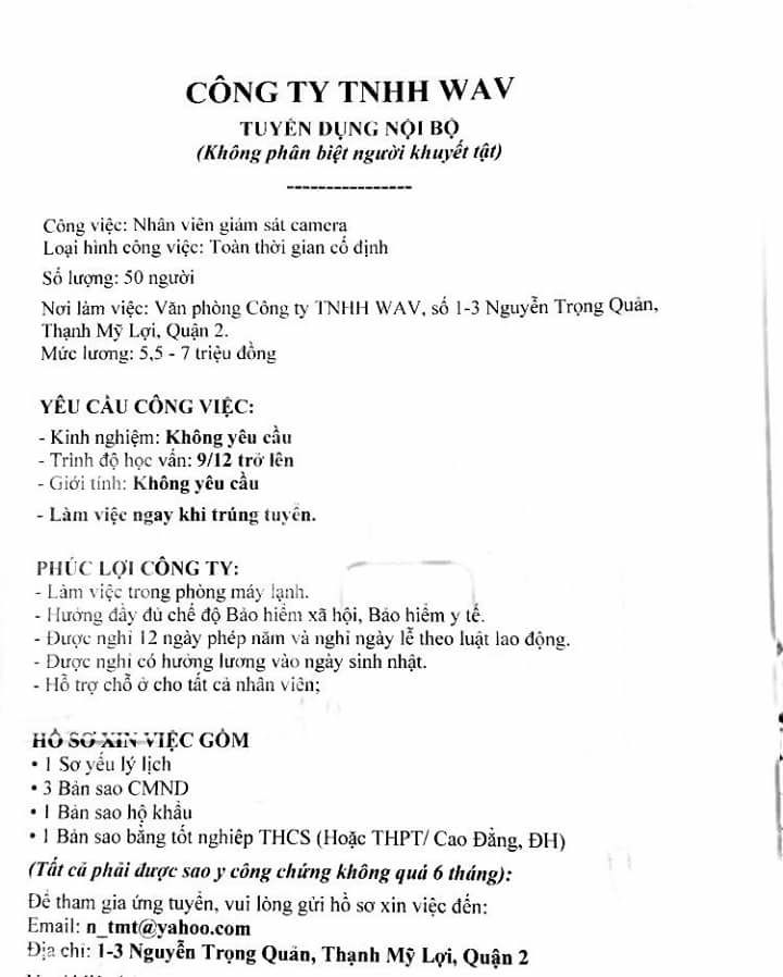 HOANHAP.VN -Tuyển nhân viên giám sát camera nhận người khuyết tật phù hợp tại TP Hồ Chí Minh