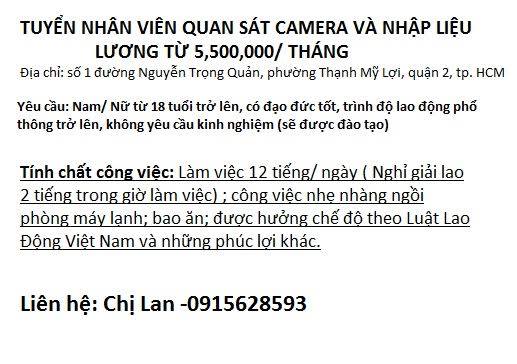 Tuyển nhân viên người khuyết tật nhẹ làm quan sát camera và nhập liệu tại TP HCM