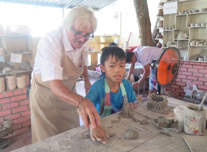 Ông Oliver Oet (62 tuổi, người Pháp) đã không ngại đường sá xa xôi, cách trở để đến Cố đô Huế và truyền dạy những kỹ thuật làm gốm Raku của Nhật Bản cho các em.