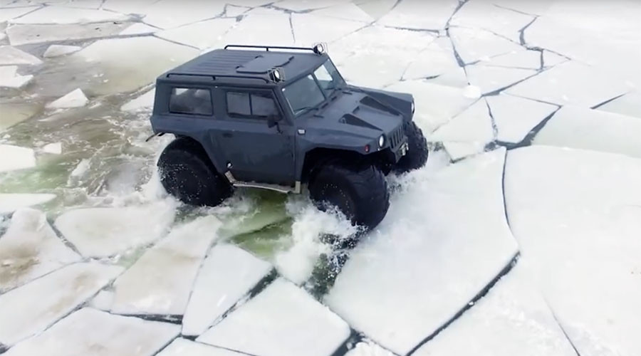 Hãng Hunta vừa trình làng một chiếc xe có khả năng đi trên mọi địa hình bao gồm cát, sỏi, rừng núi, tuyết và thậm chí là lội nước không khác gì một con thuyền thực thụ.