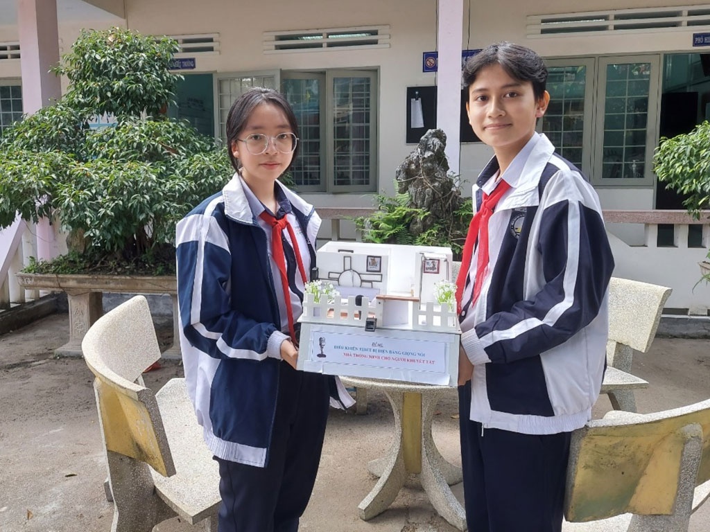 Mong muốn những người khuyết tật thuận lợi hơn trong hoạt động hàng ngày, hai học sinh lớp 9 đã sáng tạo dự án Nhà thông minh điều khiển bằng giọng nói.